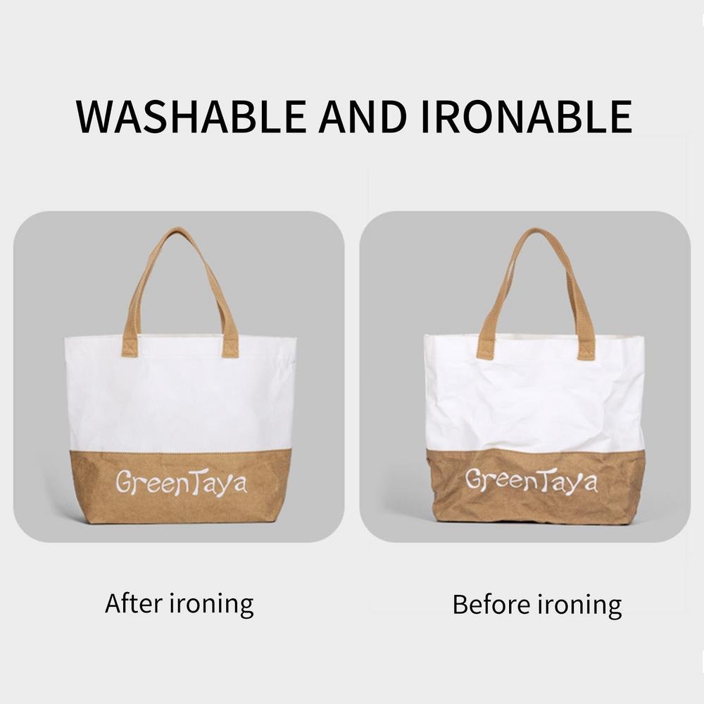Washable Kraft Paper Bag Brown Eco-friendly Shopping Tote Bag